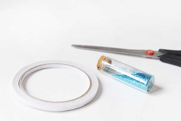 Paso 2: Se necesita doble cara cinta, escarcha, tijeras