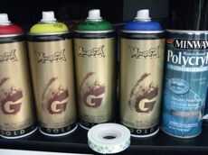 Colocar los anillos de tono en el paquete y la nota que tambores en el kit se corresponden con la banda de Rock establecido. Luego llevarlos fuera y los colores adecuados de pintura cada uno. De izquierda a derecha debe ser: rojo, amarillo, azul verde. Puede que necesite aplicar varias capas para que no puede ver el blanco a través de la pintura.