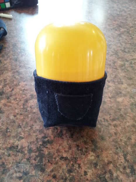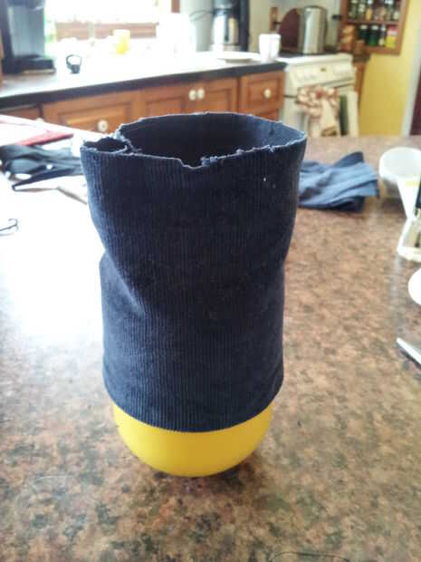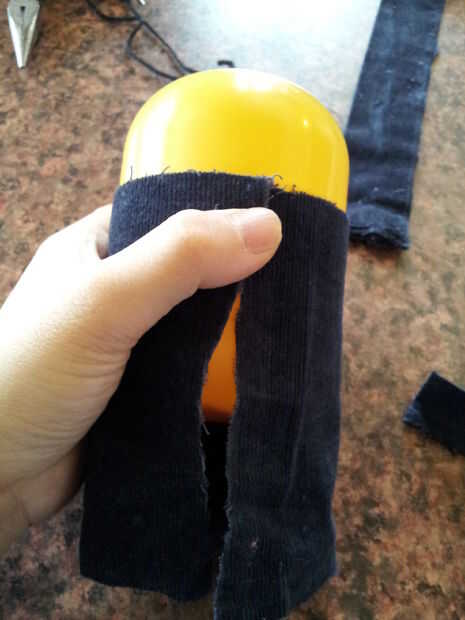 Tomar a la tela y coser el borde áspero para terminarlo. Luego envuélvalo alrededor de la cápsula con el "lado bueno" hacia fuera. Cortar a la tela para que con a los bordes laterales y el borde inferior se extiende más allá de la parte inferior de la cápsula por un par de pulgadas. Coser los dos lados juntos para producir un tubo que se encaja la cápsula. Una vez que estés satisfecho con la colocación de la tela, voltee la cápsula para que usted pueda trabajar en la parte inferior. Si tienes algo en la cápsula, debe ser capaz de valerse por sí mismo, que podría hacer más fácil coser la parte inferior.