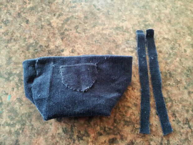 Para monos, restos del dobladillo de los pantalones es una gran manera de reutilizar lo que sería lo contrario tirar. Además, esto le proporciona un borde ya acabado, así que no tienes que acabar a ti mismo. Trozos de pana hacen monos de aspecto especialmente realistas.