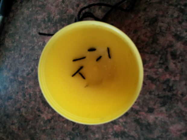 Se hicieron agujeros en la mitad más pequeña de la cápsula con un descosedor. Luego pequeños trozos de alambre se corte, a través de los agujeros y doblados para evitar que se deslicen hacia fuera.