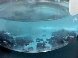 Una reacción ocurrirá, esto debe suceder. La reacción debe ser como la de la foto. El zinc está siendo cubierto en lo que parece ver como, "pelo"! Es el cobre! Puede calentar la solución para acelerar su proceso, que es opcional.