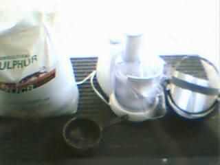 1. azufre puede ser polvo o pellets o cualquier cosa que sea llano azufre elemental. Puede conseguir esto en un almacén de suministro. Tengo 50 libras de $30. Puede tener impurezas hasta tal vez un 20%. Las impurezas más igualan a menos fuerza. Si no quieres quanities grande, comprar algunos desde aquí >http://doitbest.com/Main.aspx?PageID=64&SKU=722367&utm_source=Froogle&utm_medium=FREECSE&utm_term=722367&utm_content=6790&utm_campaign=DATAFEED