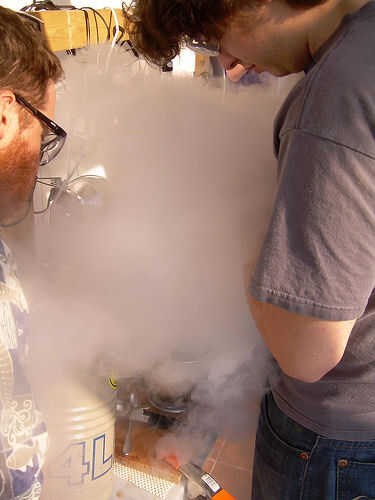 Paso 1: Nitrógeno líquido puede congelar el alcohol