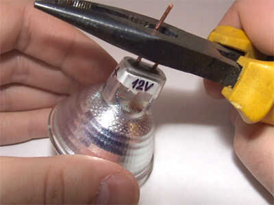 Trabajo hecho! Es el momento para una prueba. Conecte la bombilla a una batería de 12V (coche o cualquier otra prestación que la tensión). Aguanta la respiración y...