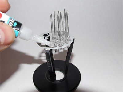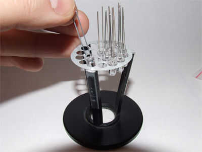 Poner una gota de Super Glue en cada margen led y continuar arreglando los otros. ¡ ADVERTENCIA! Tenga cuidado de no para aplicar accidentalmente pegamento en las patas del LED. Cuando tendrás que soldar las patas, éstos se calentarán y el pegamento se desprenden un poco de humo incoloro con efectos importantes en los ojos! Sé, que has hecho y no podía dejó llorando por una hora. Creo que es cómo hacer eso gas lacrimógeno después de todo...