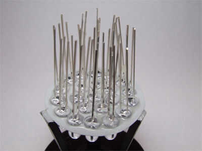Tomar la nailclipper y cortar las patas del LED y doble a la siguiente etapa. El + va a - y así sucesivamente hasta completar una cadena de cuatro. Iniciará una nueva cadena.