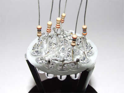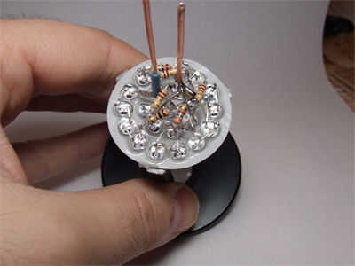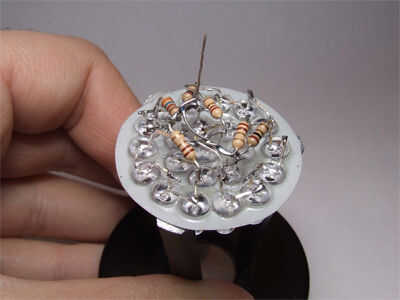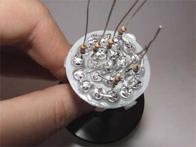 Ahora soldar las patas de resistencias entre sí para conseguir una sola - que va a todas las cadenas. Trate de mantener un perfil bajo para que todo ajusta el foco.