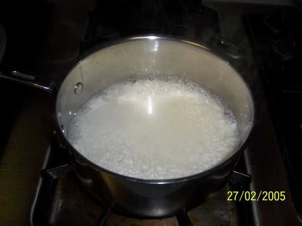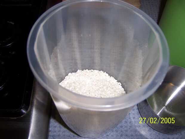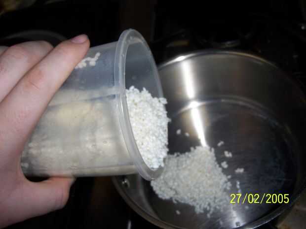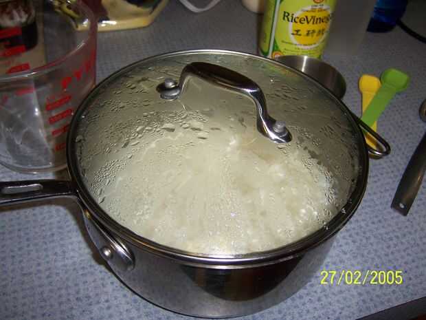 2: después se lava el arroz, poner en un pote de salsa de pequeñas y medianas y poner 1 taza de agua en la parte superior.