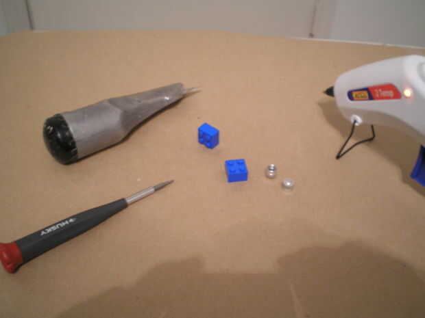 1) cómo desde muchas cuadras y que color te deseo pero tienen que ser 2 X 2. 2) casquillos de válvula del vástago del metal. 3) pistola de pegamento caliente. 4) cuchillo. 5) destornillador plano pequeño.