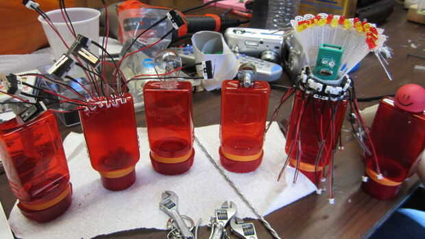 ; WARENEUTRONPara hacer un tornado en una botella, llenar una botella de plástico parcialmente con agua, añadir unas gotas del plato de jabón y añadir un poco de brillo antes de remolinos en el agua para crear un ciclón miniatura. Crear un tornado en