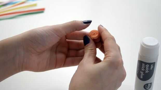 - Tomar una luz naranja papel quilling y lo vaina.