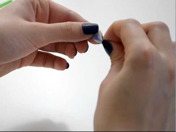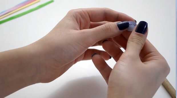 - Tome una tira de quilling púrpura luz y lo vaina.