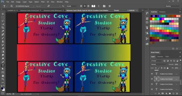Ahora necesita añadir el texto que desee, este es la parte frontal de las tarjetas. Pongo el nombre de su negocio y si usted es un negocio de arte o un negocio que la gente compra cosas de usted, entonces pondría 'Gracias por ordenar!', pero está totalmente hasta usted. Después de agregar el texto guardarlo.