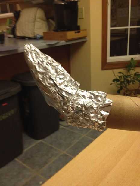 Ahora toma una hoja de mediumish de aluminio y envuélvalo alrededor de la parte puntiaguda del cuerno.