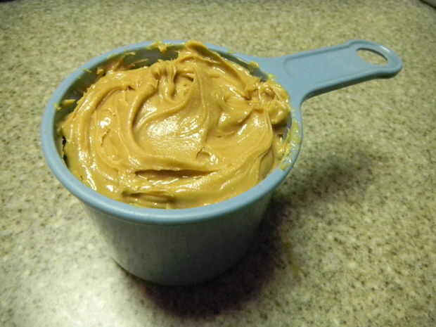 - Mida 1 taza de mantequilla de maní. Colocar en un bol y derretir en el microondas. (Foto 1)