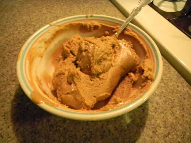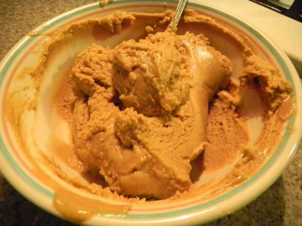 - Cuando la mezcla de azúcar y agua a aproximadamente 100° F, perdí mi paciencia y había mezclado con la mantequilla de cacahuete derretida. Derritió la mantequilla de maní a incorporar con el azúcar mejor y ayudar a prevenir la formación de cristales grandes de azúcar.