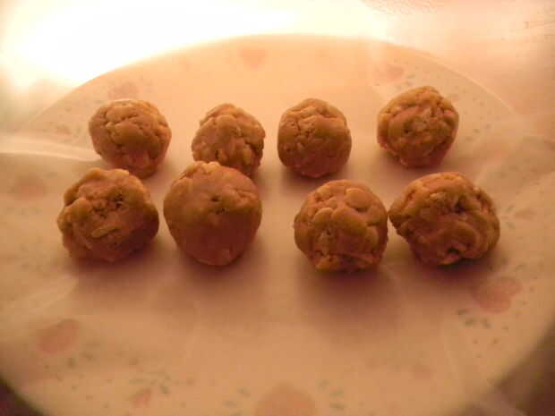 ¿Queda sobre el relleno de mantequilla de maní o chocolate? Había mezclado a mi izquierda sobre mantequilla de maní relleno con cereal de arroz crujiente y había rodado en bolas. Después de congelar las bolas de mantequilla de maní, había cubierto en chocolate. Como mantequilla de maní, pero con algunos crunch!