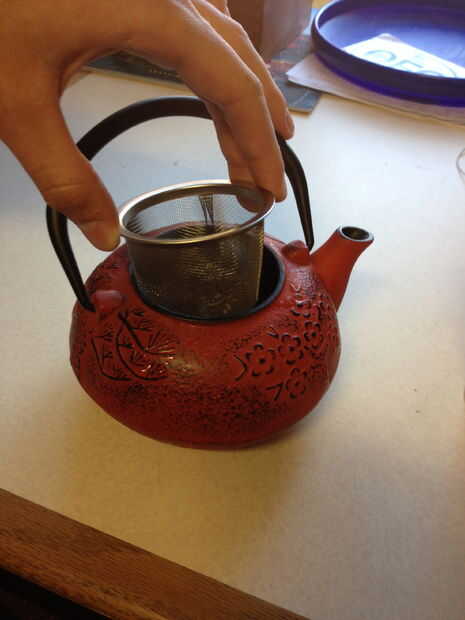 17. una vez hecho empapando, retire el colador de té de la tetera y apartar el colador (Nota: puede estar muy caliente). Vierta el té en una taza.