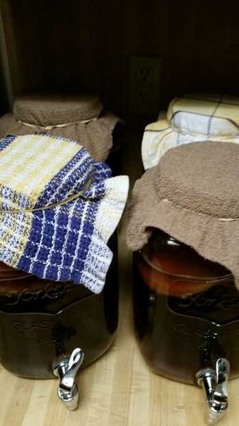 Lugar lejos de la luz solar directa por 6-15 días. Usted notará que un scoby nuevo se empiezan a formar en la parte superior. Para asegurarse de que el té está listo para cosechar, retirar un par de onzas para una prueba de sabor. Cuando el tiempo de arranque en caliente sabor prueba dentro de 5 días. Cuando el tiempo es de arranque en frío sabor prueba en día 7. El té se fermenta más rápido cuando está caliente y tarda más cuando esté frío. En el verano, el lote puede estar listo ya en 5 días. En el invierno, puede tardar tanto como 10 o más días, dependiendo de cómo enfriar su casa.