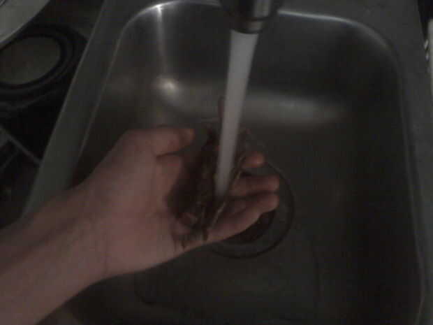 Empiece por conseguir unas cuantas raíces y lavando en el fregadero. La razón de ser, es que las raíces del sasafrás como la mayoría de las raíces se encuentran en tierra. Yo generalmente será sólo enjuagar y frotar la suciedad. Usted puede decidir usar jabón, pero si Asegúrese usted enjuagar muy bien.