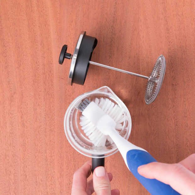 Esta es la primera y quizás más importante paso que querrá eliminar cualquier sedimento que queda de café. Amargados alcaloides encontrados en el café tienden a permanecer detrás en los componentes metálicos de la prensa francesa, así que asegúrese de limpiar el émbolo.