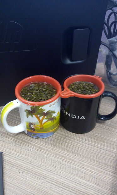 Preparar el colador solo cortando el mango (usando un cuchillo o cuchilla) como en las fotos. Dejar una parte de la manija a los lados del filtro ya que necesita apoyarse en los bordes de la taza. Este es el paso sólo técnico necesario para el proceso todo :)