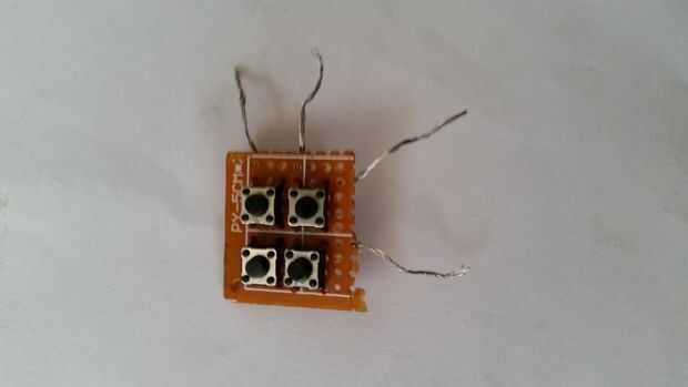 3. algunos alambre su juct proyecto simple que usted tiene que conectar el botón. para ver cómo conectar el botón de ver la foto. 1 conectar el pin 1 del botón 1 al pin1 de buton 3. (un pin en el teclado). 2 conectar el pin 1 del botón 2 al pin 1 del botón 4. (dos pin en el teclado). 3 conectar el pin 2 del botón 1 al pin 1 del botón 3. (tres pin en el teclado).