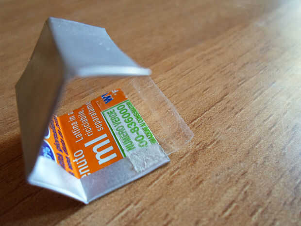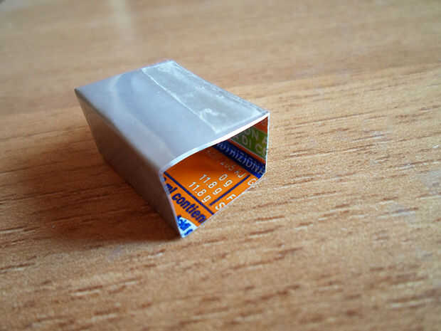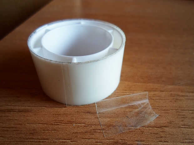 Asegure el rectángulo con trozos de cinta adhesiva en el interior y exterior, uniendo los dos extremos.