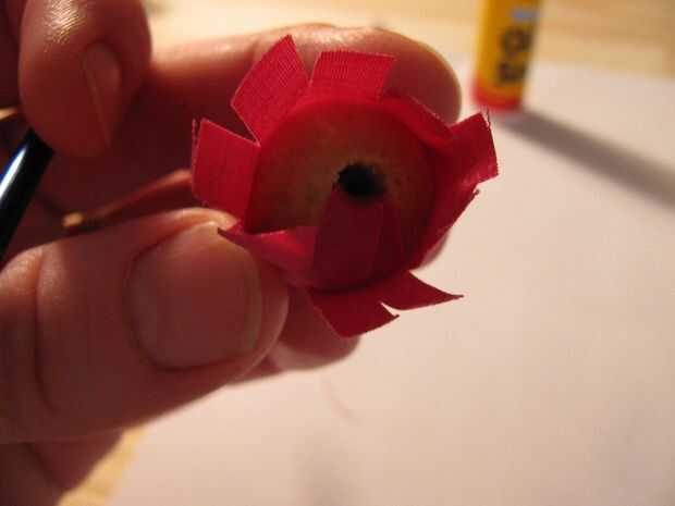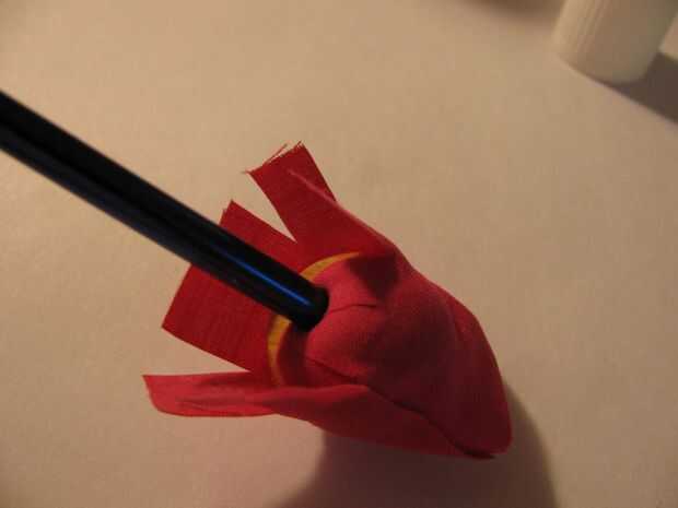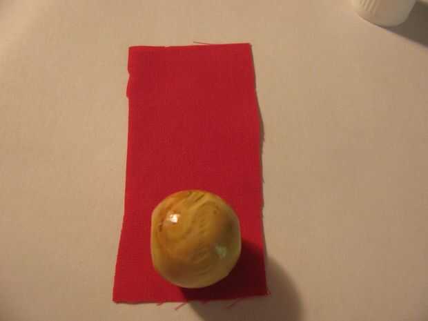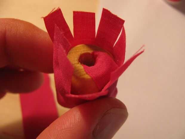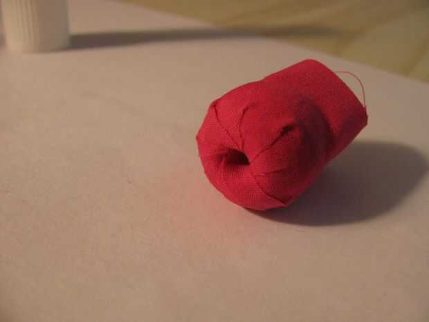 * Después de haber cubierto a la tela en el pegamento, coloque el talón en el extremo de la tela (centrado) y ruede para arriba.