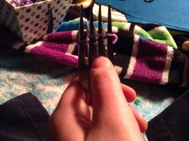 Paso 1: Configuración de telar Configurar su telar para que las filas están en forma de "v".Paso 2: bandas Toma una banda de color y toma de la clavija de la parte inferior y estirar hasta el beg justo encima de él. Lo mismo en todas las clavija
