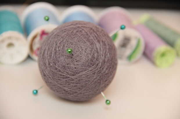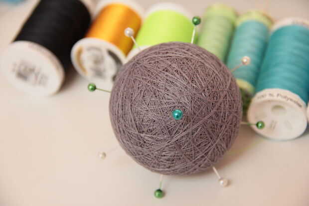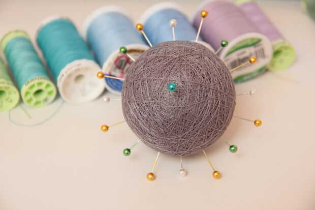 Colocar otro par de pasadores para crear una línea en el centro que atraviesa la primera línea en ángulo recto. Ver la primera foto.