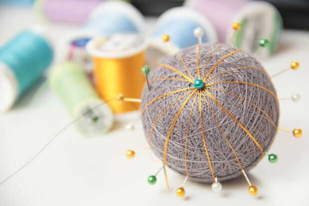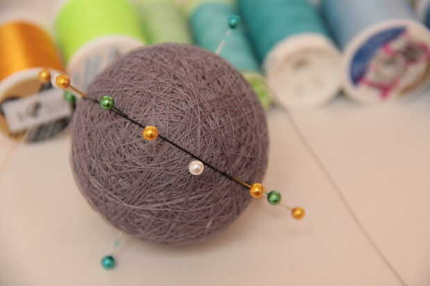 Sin atar un nudo, puntada a través de la bola varias veces, hasta que el hilo es difícil de sacar la bola.