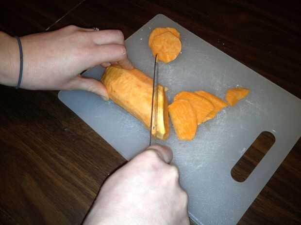 Pelar las batatas y calabacín con un pelador de verduras. Pelar cualquier ajo, cebollas, etc. a mano.