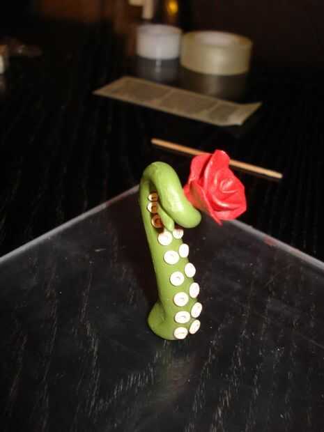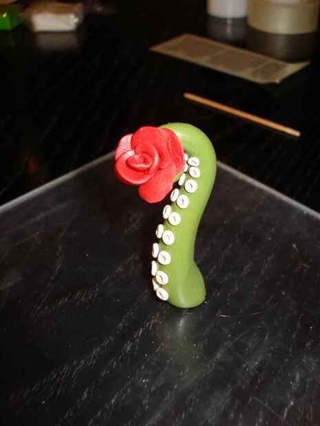 Una vez terminada la flor haya terminado habrá formado un tallo que puede envolver el extremo del tentáculo alrededor. Agregar la flor a una forma estándar de tentáculo y hornear como de costumbre. (fotos a seguir una vez que la esposa no está mirando)