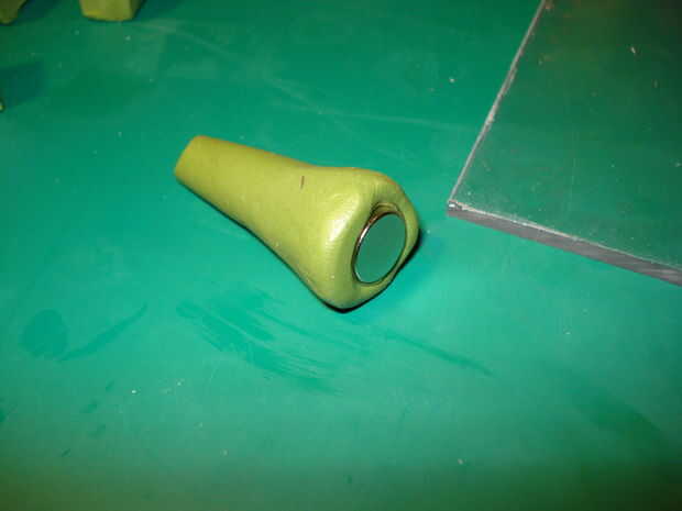 Para quitar la toma de imán la pila de imanes y colóquelo contra la base, se te pegan y puede tirar hacia fuera, dejando un agujero del tamaño correcto. Una vez cocido se puede pegar el imán hacia en el agujero.