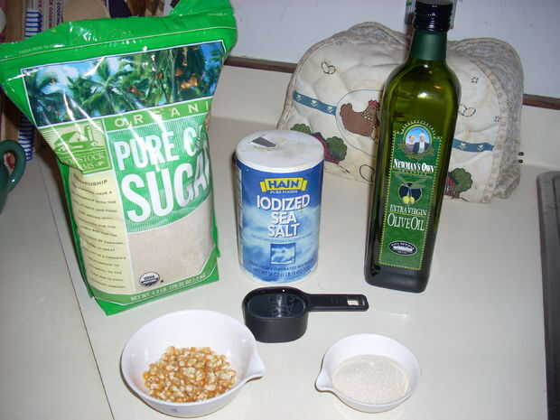 1/4 de taza de aceite de oliva o de maíz (aceite de oliva le dará un sabor más ligero, más limpio)