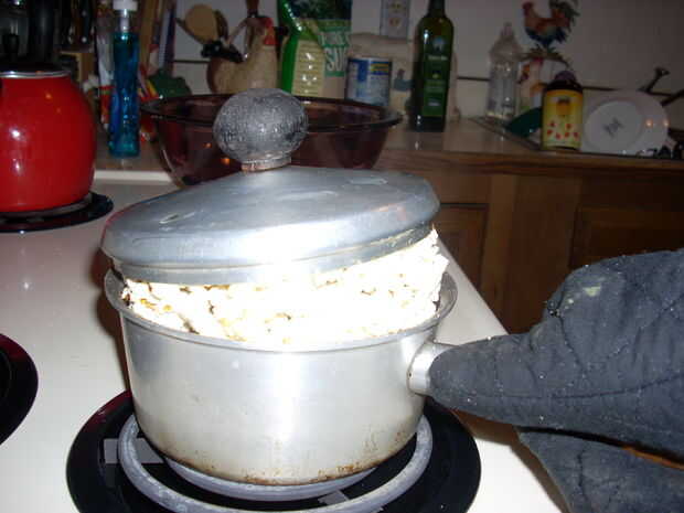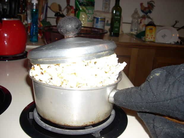 Como una nota aquí, usted notará que el maíz hecho estallar levanta la tapa de mi olla. No dude en utilizar una olla con los lados más altos así que esto no va a suceder a usted. Suceden como este bote tanto que puedo pasar por alto sus lados cortos.