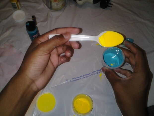 a la mezcla, agregar pigmento de thermochomic la cantidad deseada, mezcla de 1 cucharadita a la vez.