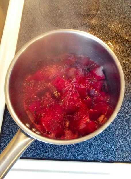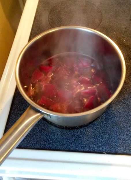 Pone en estufa y pone calor a alta hasta que el agua hierve. Convertir calor a medio y dejar cocer hasta que las remolachas son suaves, alrededor de 20 minutos. Prueba de consistencia de remolachas periódicamente. Usted se eventualmente presionar a pedazos un par a través de un colador, por lo que necesita ser lo suficientemente suave.