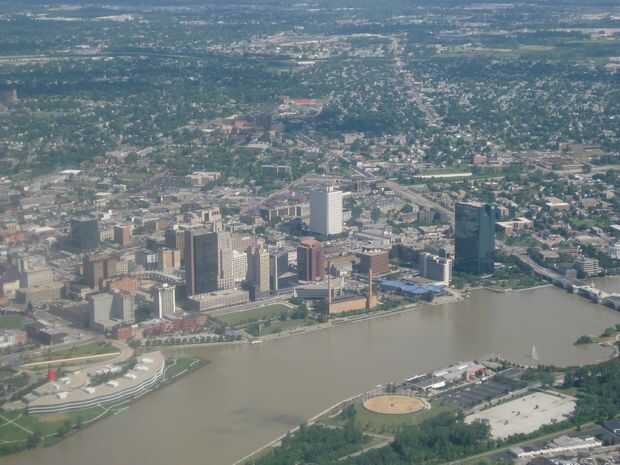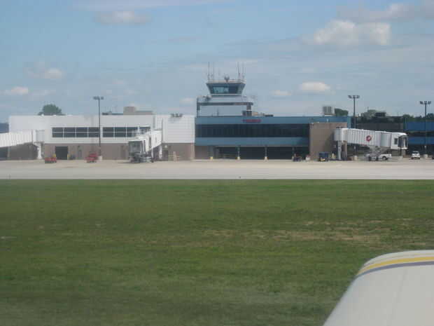Toledo Express Aeropuerto, un hermoso establecimiento situado a pocos minutos al oeste de la ciudad. Tiene vuelos diarios a Detroit, Chicago y Cincinnati y ofrece vuelos regulares a la bahía de Tampa y Orlando, así. Aparcamiento barato, la terminal está a poca distancia del coche, y se puede llegar en la terminal una hora antes de tu vuelo sin tener que preocuparse sobre la seguridad del claro en el tiempo. (Y los baños en planta alta son algunos de los más interesantes y elegantes de la ciudad, curiosamente).