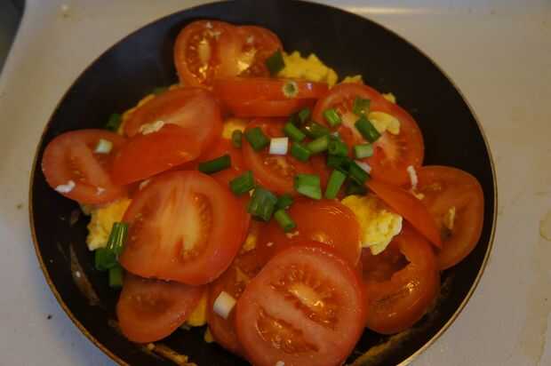 Cómo hacer tomates con huevos fritos (7 / 8 paso)