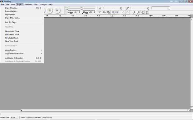 Ahora sigamos con la parte real.  Abra Audacity y seleccione Haga clic en proyecto > Importar Audio.  O puedes simplemente pulsar Ctrl + I.  Cuando la ventana directa a la canción que desea utilizar.