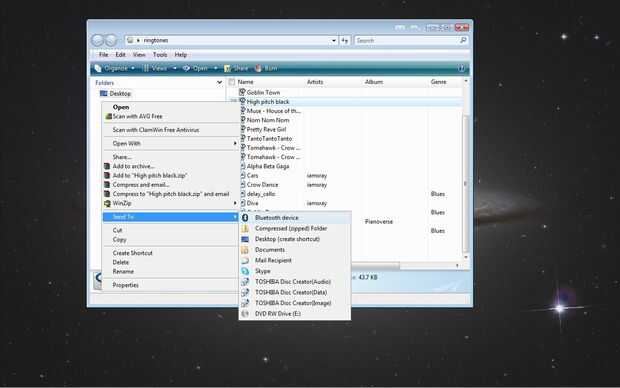 Luego abra su carpeta de exportación conversión y encontrar el tono de llamada que has hecho. Haga clic derecho y seleccione Enviar a: > dispositivo Bluetooth. Seleccione su teléfono y envíelo.