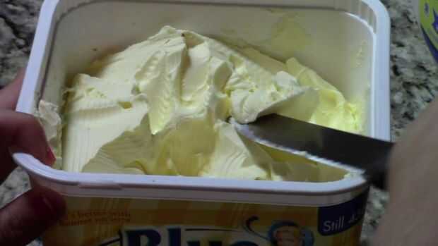 Preparar el pan primero encender la estufa, y luego agregando algo que evitará que su tostada se pegue a la sartén. Utilizamos azul de Bonnet de mantequilla / margarina y funcionó muy bien! Calentar la mantequilla colocando en la sartén sobre la estufa y mover alrededor de la bandeja por la inclinación en varias direcciones.