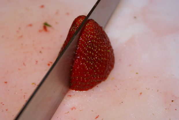 Con su cuchillo, cortar la strawberry(s) vertical 4 igual tamaño.