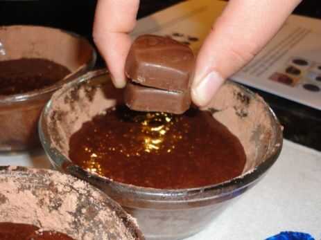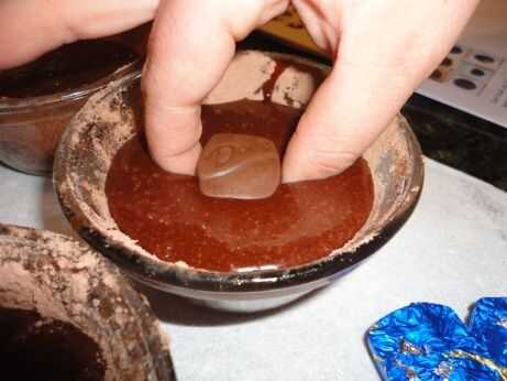 Apilar dos sin envolver piezas de Dove chocolate encima de la masa en cada una de las tazas de natilla y presione en el centro de la masa. Use un cuchillo para extender masa encima del caramelo chocolate para que superficie de candy no está expuesta.
