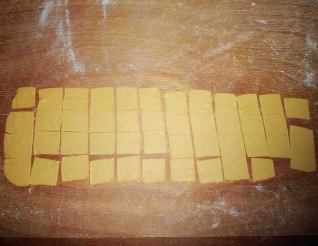 Cortarla en muchos cuadritos con un cuchillo, de unos 4cm (1,57 pulgadas) de grande.