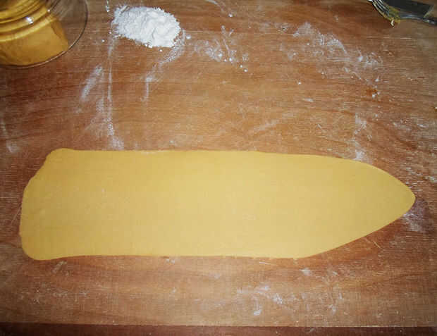 Pasar la pieza de masa a través del nivel más grande de la máquina de pasta.