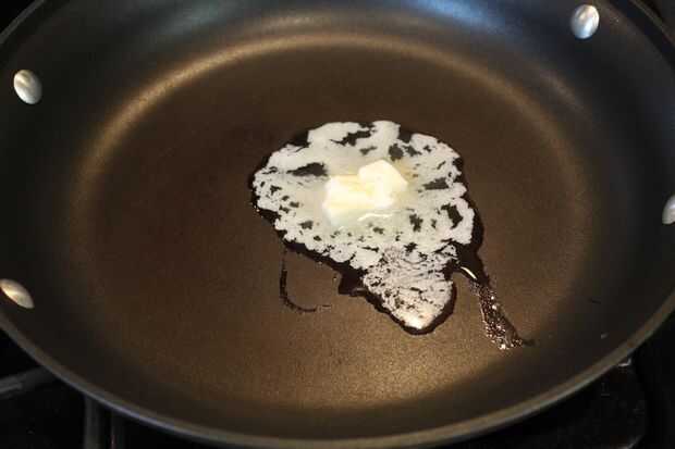 Derrita la mantequilla a fuego medio en una sartén antiadherente.